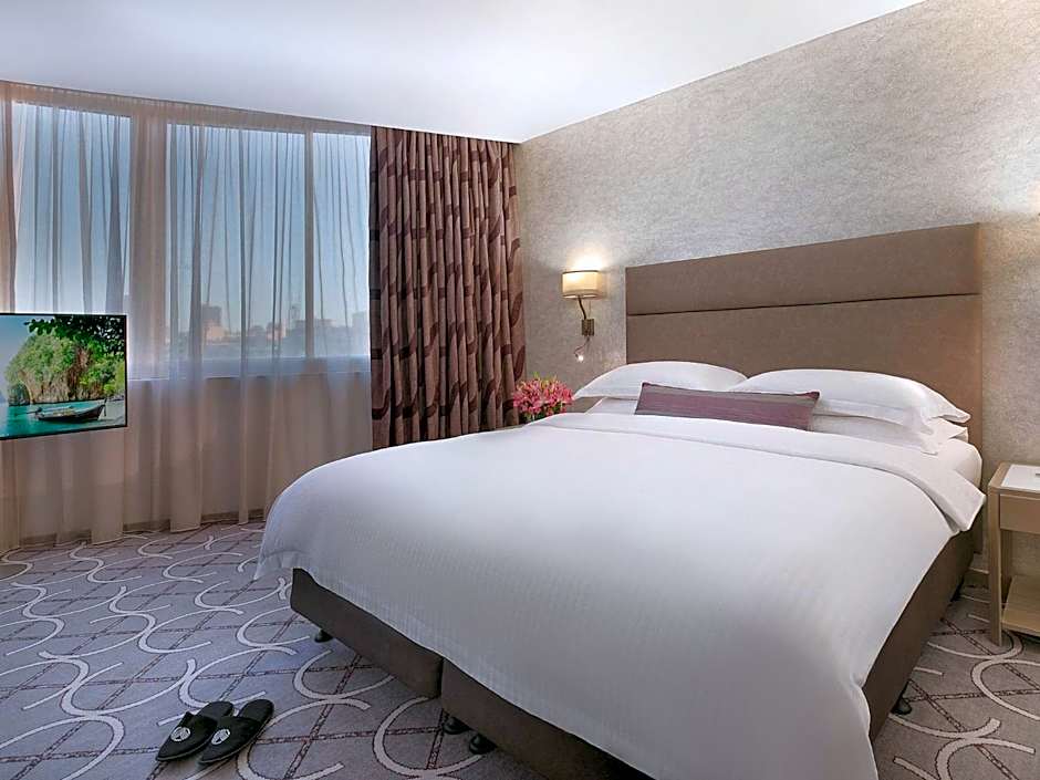 35 sqm twin sized bedroom with a balcony overlooking the city. The same room type is available with a king bed upon requirement. The room is equipped with an AC, phone, LCD TV, multilingual satellite, a private safe deposit box, bathtub, hairdryer, tea and coffee making facilities and wireless internet connection.