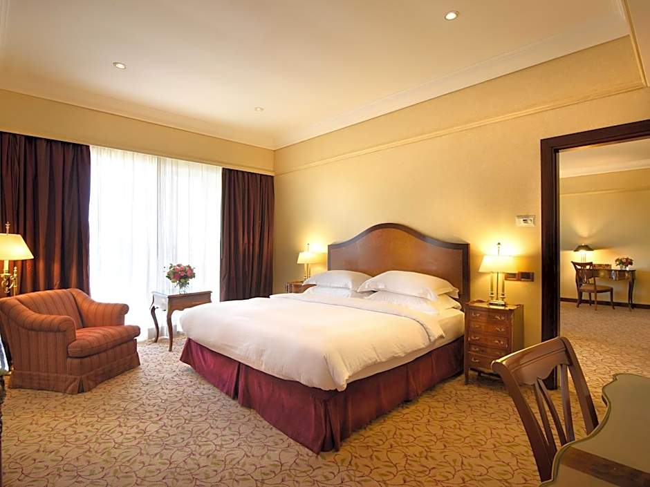 52 sqm king sized bedroom with a living area with contemporary furnishings overlooking the city or the garden. The unit is equipped with a kitchenette, microwave and mini-bar. It offers an AC, phone, multilingual satellite, LCD TV, a private safe deposit box, and wireless internet connection.