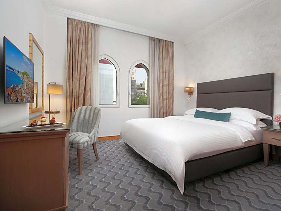 Well-sprung twin beds in the 35 sqm bedroom overlooking the beautiful city of Beirut. It offers access to the Club Lounge during the whole stay along with 24 hours stay, complimentary airport pick up or drop off, 2 pieces of laundry per day, daily refreshment at the Club Lounge from 10:30 until 18:00, and 3 complimentary premium beverages at Moodz Lounge and Bar during happy hours.