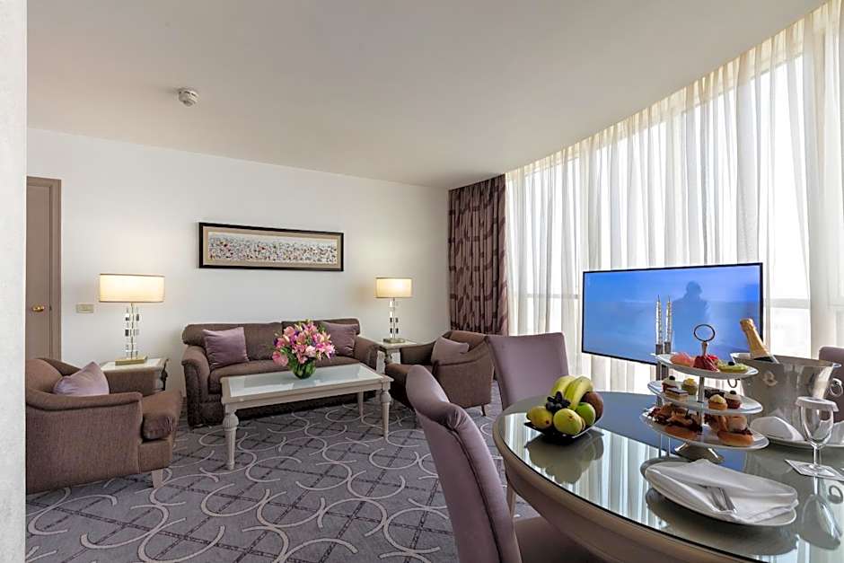 The 80 sqm luxury suite comes with a king sized master bedroom, furnished lounge, dining area & equipped kitchenette. It offers access to the Club Lounge during the stay & grants 24 hours stay, complimentary airport pick up or drop off, daily refreshment at the Club Lounge from 10:30 until 18:00, 3 complimentary premium beverages at Moodz Lounge & Bar during happy hours & 2 pieces of laundry per day.