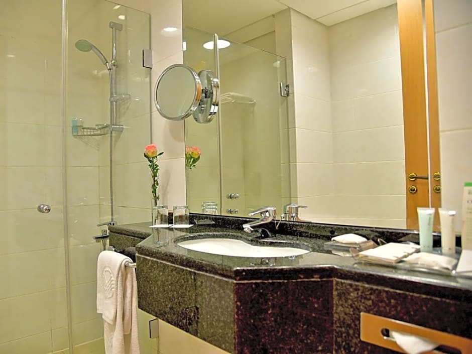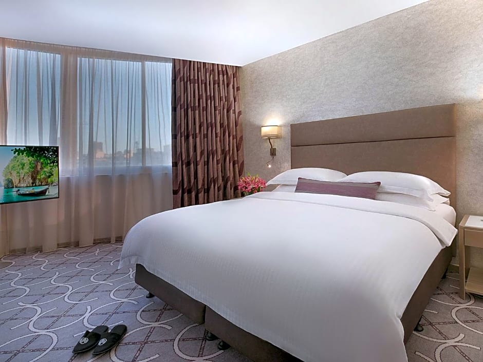 The 35 sqm king sized Club Floor bedroom is equipped for your maximum comfort. It offers access to the Club Lounge during the whole stay and grants 24 hours stay, complimentary airport pick up or drop off, daily refreshment at the Club Lounge from 10:30 until 18:00, 3 complimentary premium beverages at Moodz Lounge and Bar during happy hours & 2 pieces of laundry per day. Please note that The Club Lounge is closed temporarily.